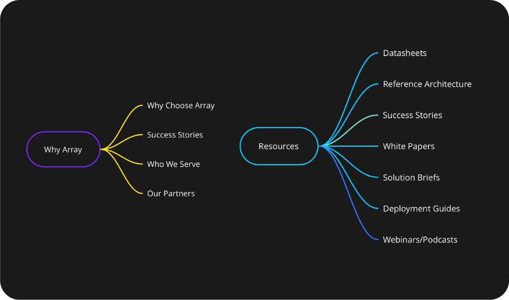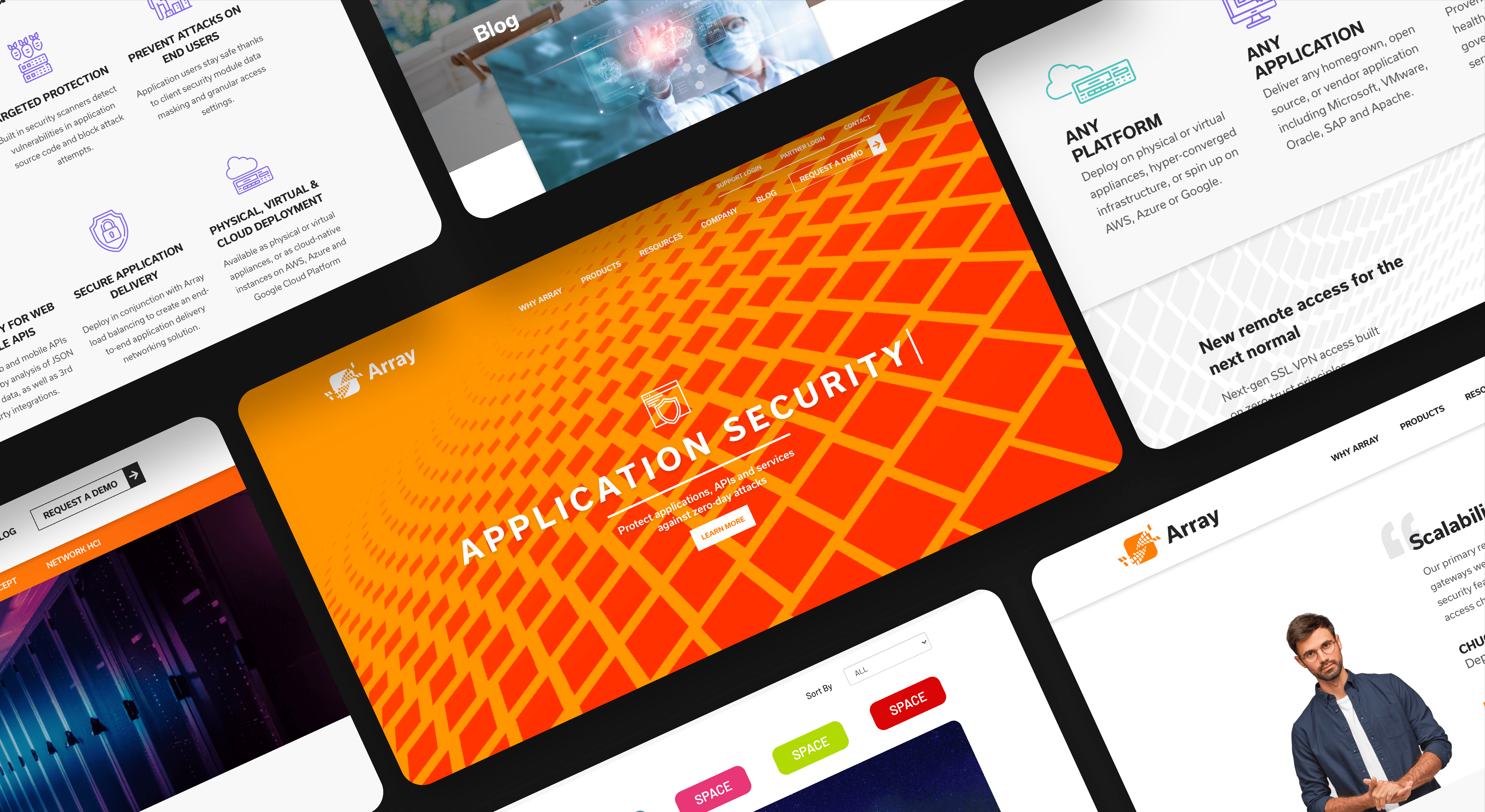 The flow of data was chosen as the main identity for the new Array look. The idea was to make the company look younger and more vibrant. The colors were made slightly more saturated in the new look and the new colors were introduced in the branding to make the company look more energetic.